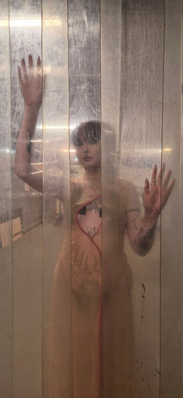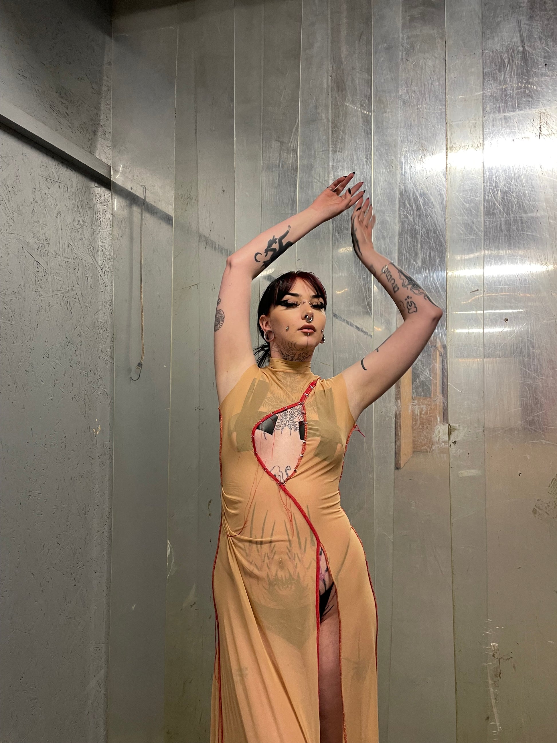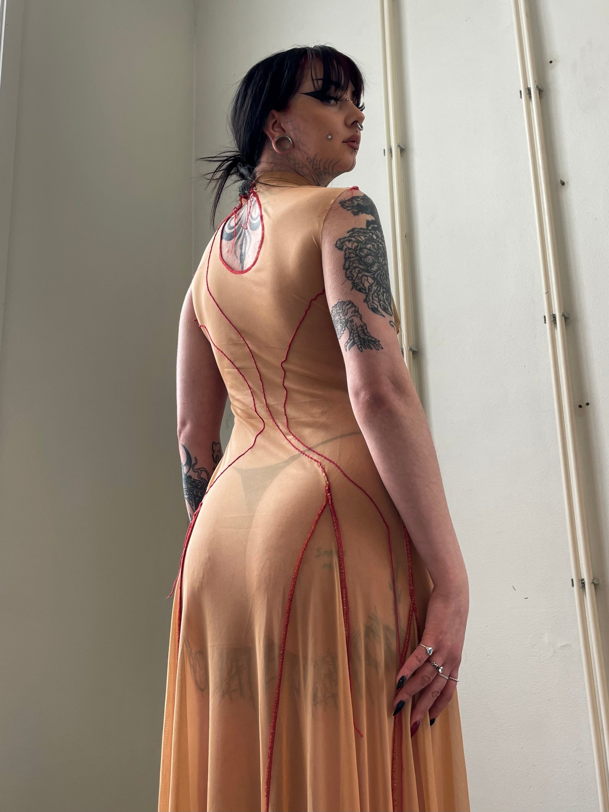 Sheer mesh maxi dress designed to function as a second skin.