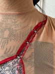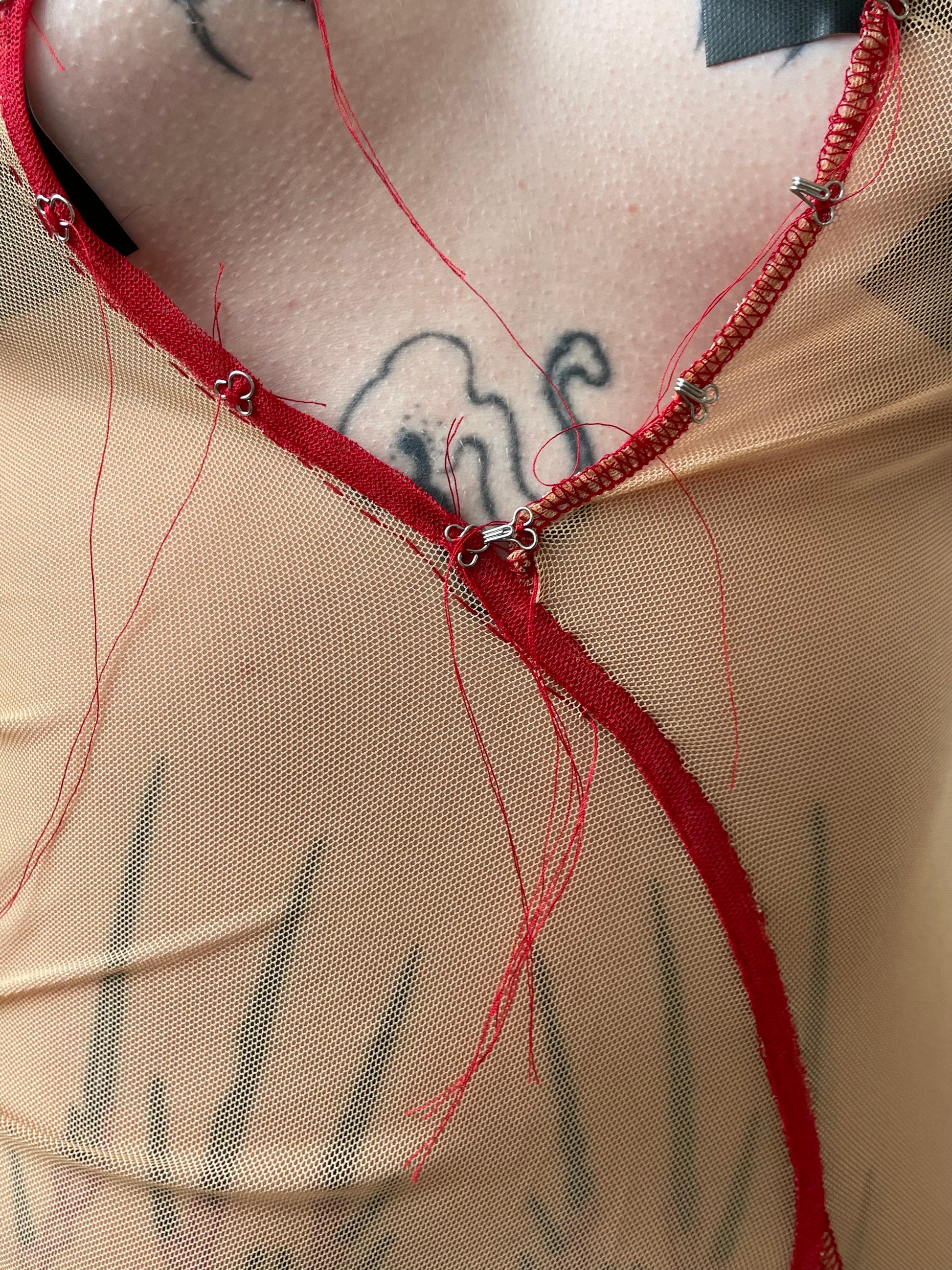 Sheer Mesh Maxi Dress with Red Accents — One of One