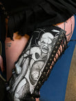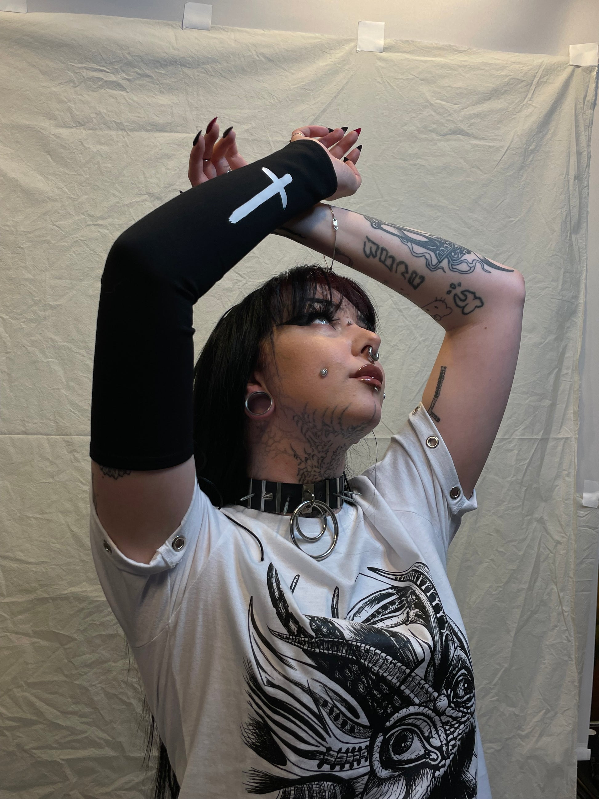 Each piece features DTF prints inspired by Toto’s artwork, including an inverted cross design and other selected graphic elements. The prints are flexible, durable, and integrated into the fabric structure.