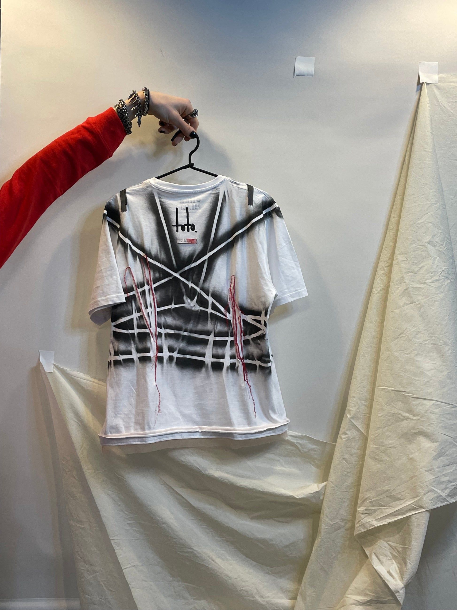 One-of-one t-shirt featuring Toto’s red lips artwork.
